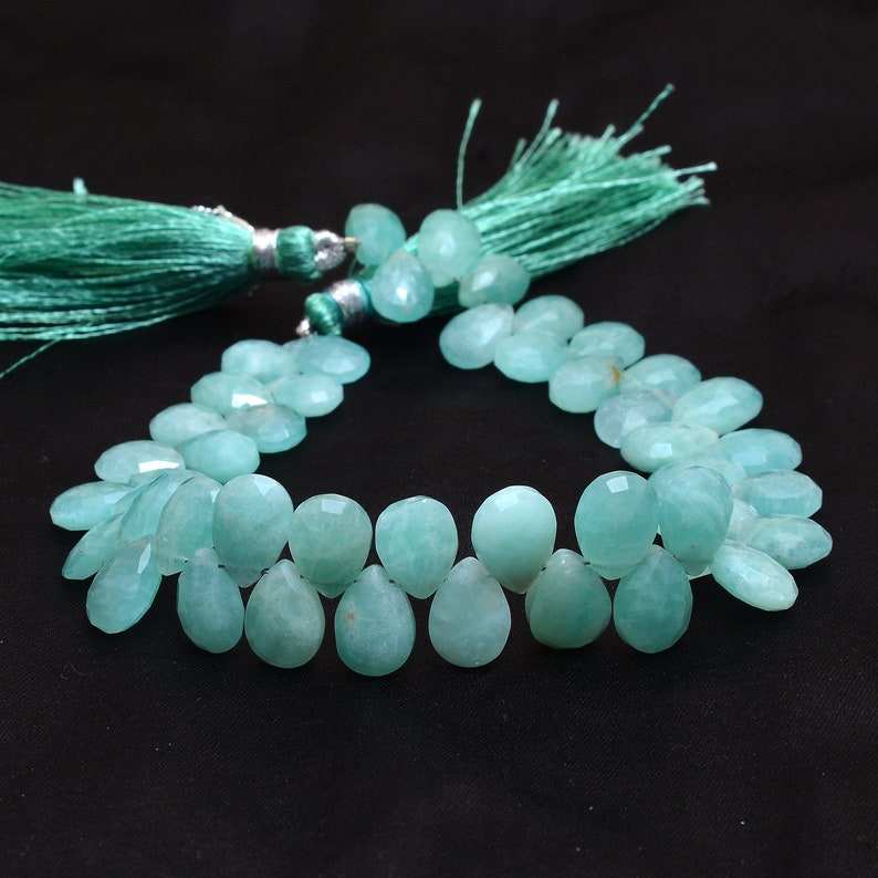 Amazonite naturelle à facettes en forme de poire perles de briolette de pierres précieuses brins 7x10mm perles de pierre d'amazonite bleue en vrac pour la fabrication de bijoux