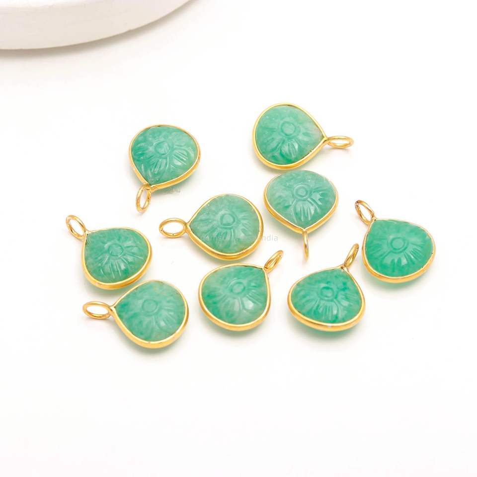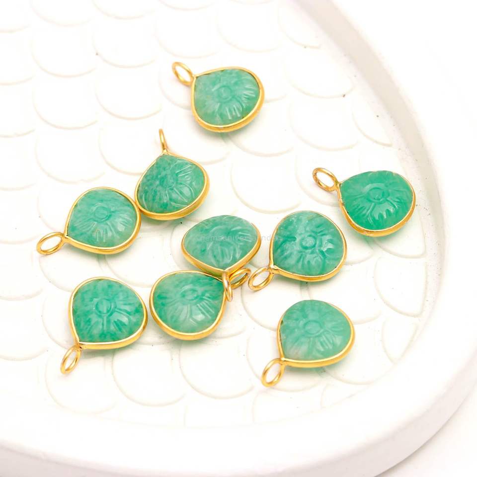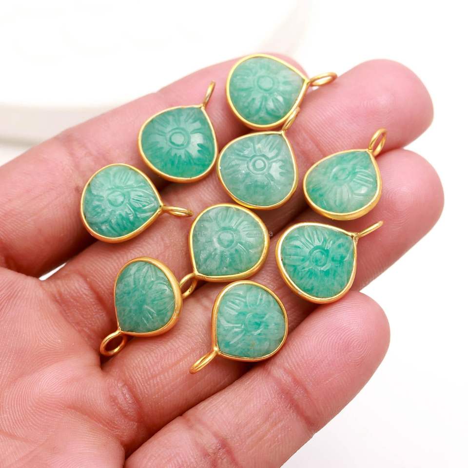 Pendentif Fleur en Amazonite Naturelle Sculpté à la Main, Breloque en Pierre Précieuse, Bijou en Argent Sterling 925, Breloque Cœur pour Fabrication de Bijoux 12mm