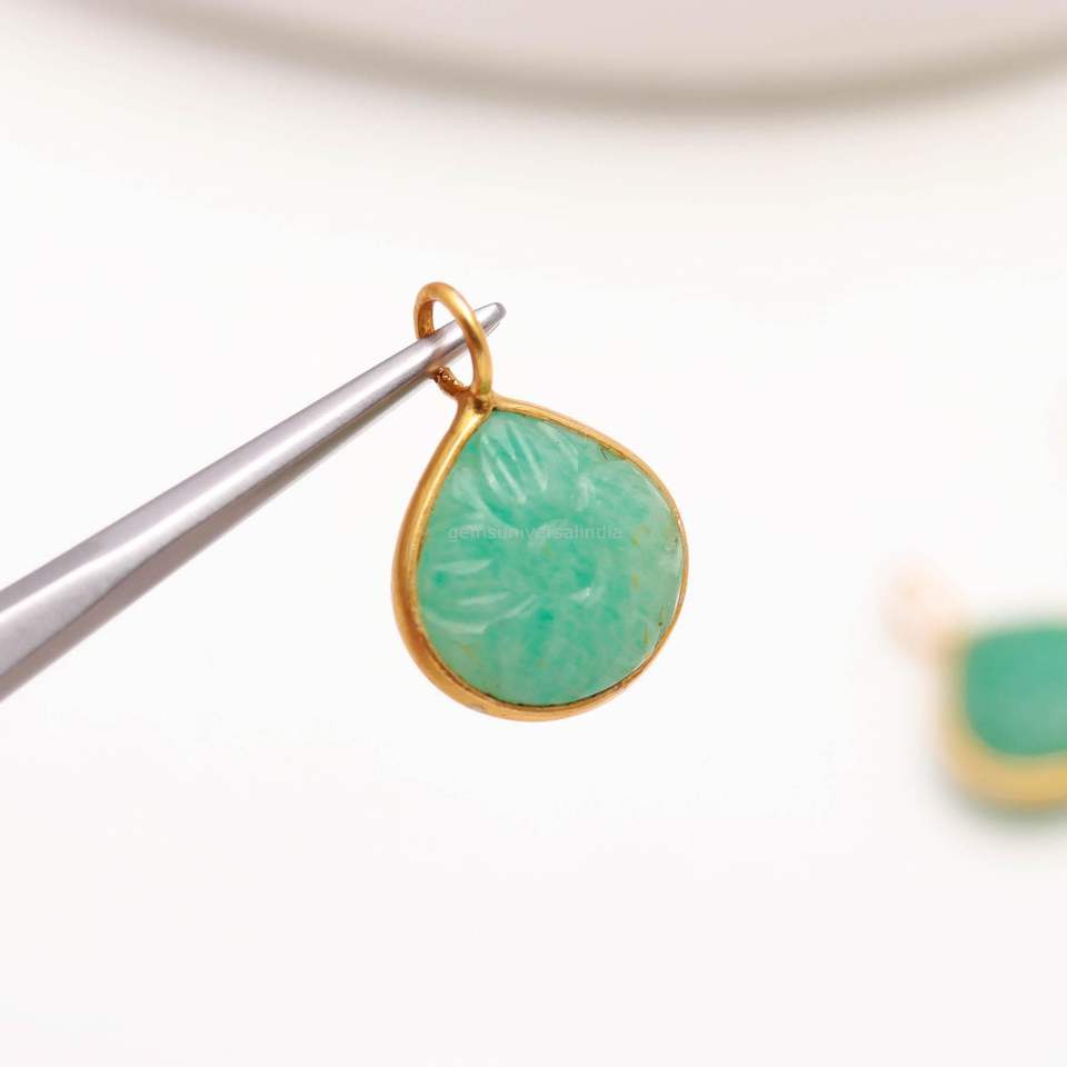 Pendentif en Amazonite Naturelle, Fleur Sculptée
