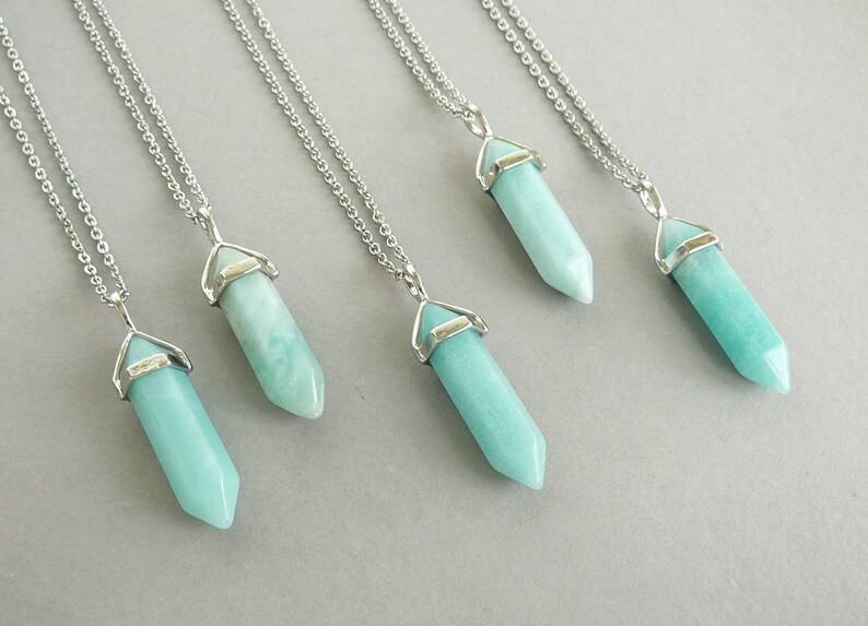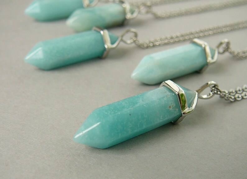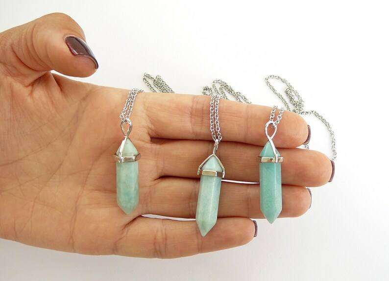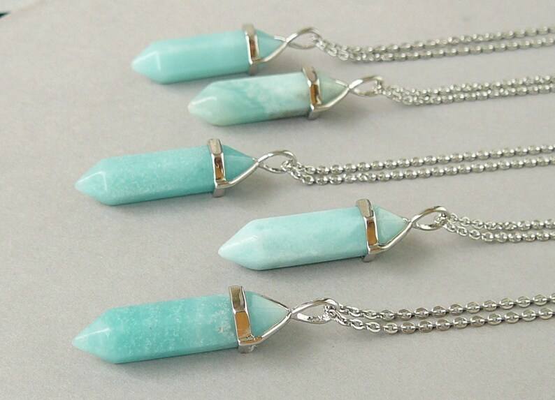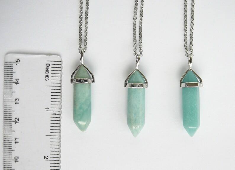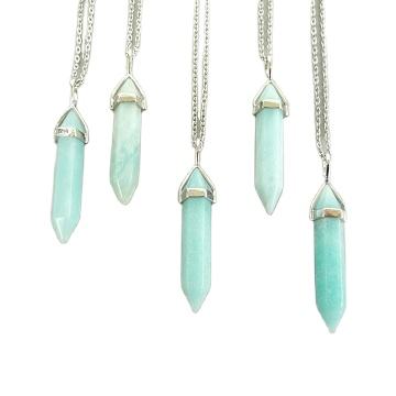 Beautiful 18\" Natural Amazonite Gemstone Pendant 92.5 Sterling Silver Double-Pointed Pencil Shape Religious Chains Charm