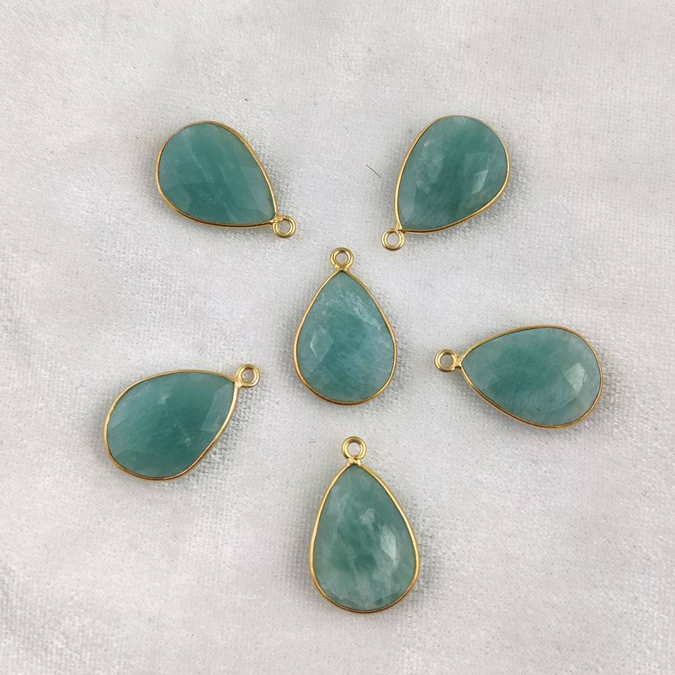 Pierres précieuses en Amazonite naturelle, coupe à facettes, poire, taille 18x13mm, Vermeil doré, ensemble de lunette en argent Sterling 925, pendentif poire, pendentifs breloques