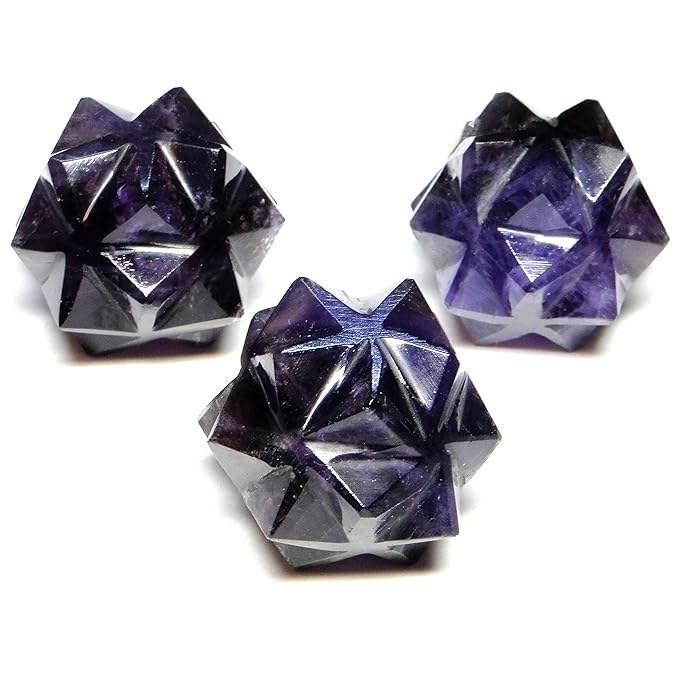 Étoile de Merkaba sculptée en améthyste naturelle à 20 pointes – Cristal d'énergie spirituelle et de guérison – Étoile de Merkaba en améthyste de qualité supérieure