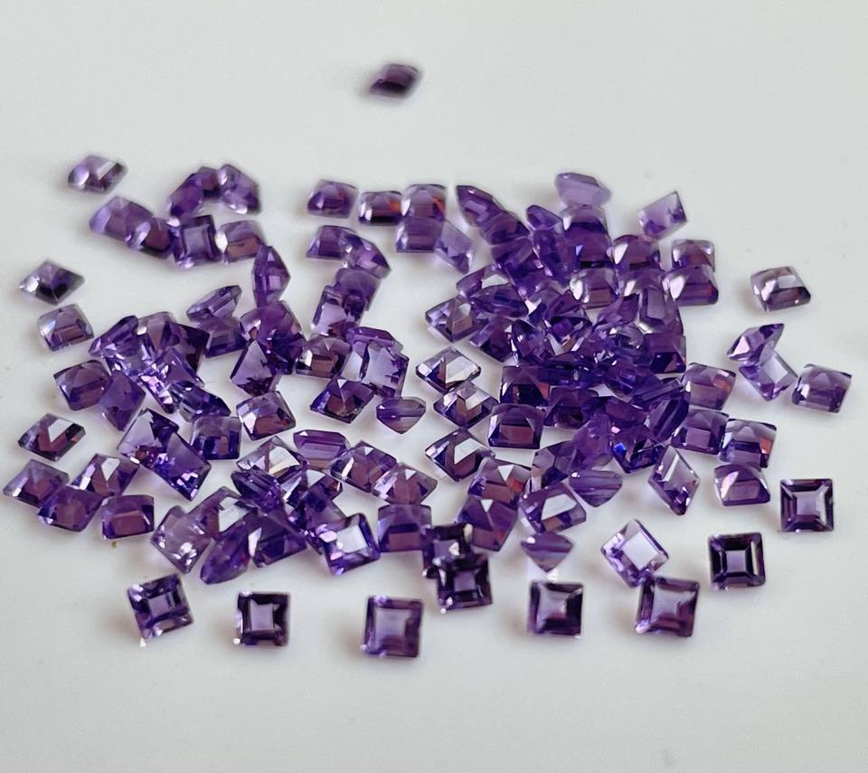 Natural Amethyst 4mm Square Cut Faceted - Loose Purple Amethyst Square Cut Top Quality