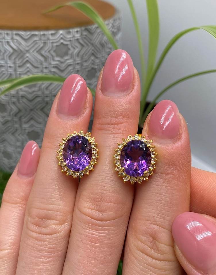Keyword:Amethyst Topaz Stud Earrings With Sparkling Dangle Gemstone Jewelry