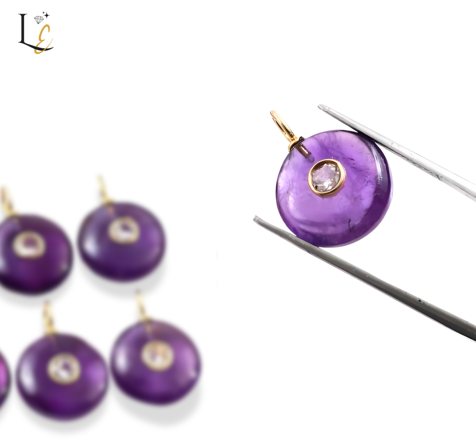 Nom du produit:Pendentif en pierre précieuse incrustée de forme ronde en améthyste naturelle