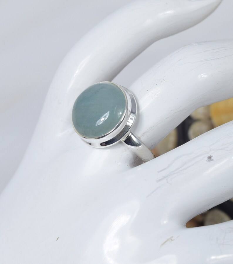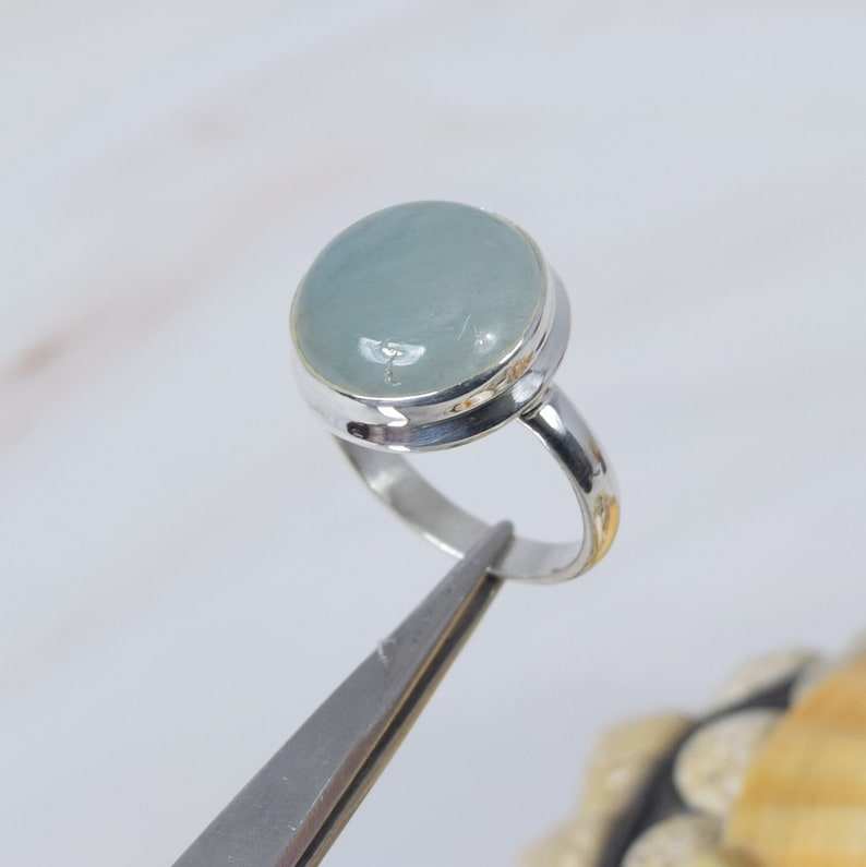 Natural Aquamarine Ring 925 Sterling Silver Round Gemstone Handmade Jewelry for Her