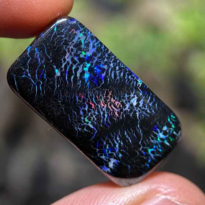 Mot-clé:Opale noire australienne naturelle présentant des étincelles multicolores flamboyantes.