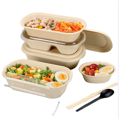 Boîte alimentaire rectangulaire jetable en bagasse naturelle 500/500 ml, écologique, en fibre de canne à sucre