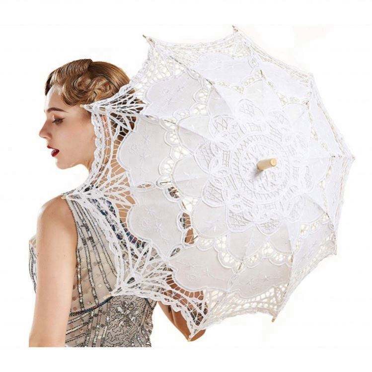 Parasol de mariage victorien en dentelle de coton imprimé sérigraphié, fait main, couleur bambou naturel, 48 cm