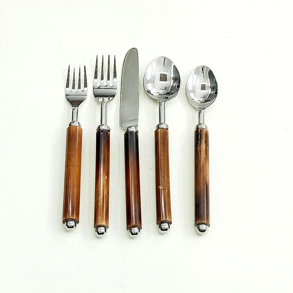 Ensemble de couverts de table avec manche en bambou naturel Ensemble de couverts en acier inoxydable avec bambou en bois naturel poli