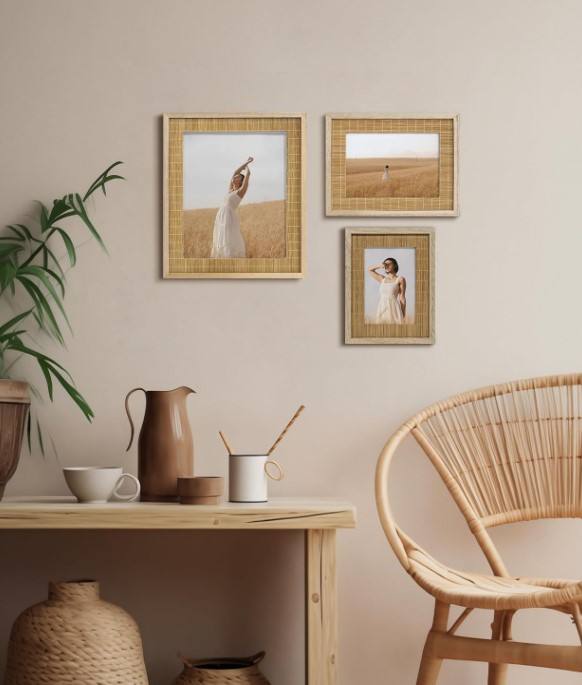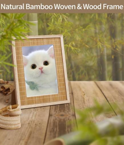 Cadre photo commémoratif en bambou naturel avec bordure en bois, idéal pour les accessoires funéraires et l'affichage de souvenirs d'amour du Vietnam