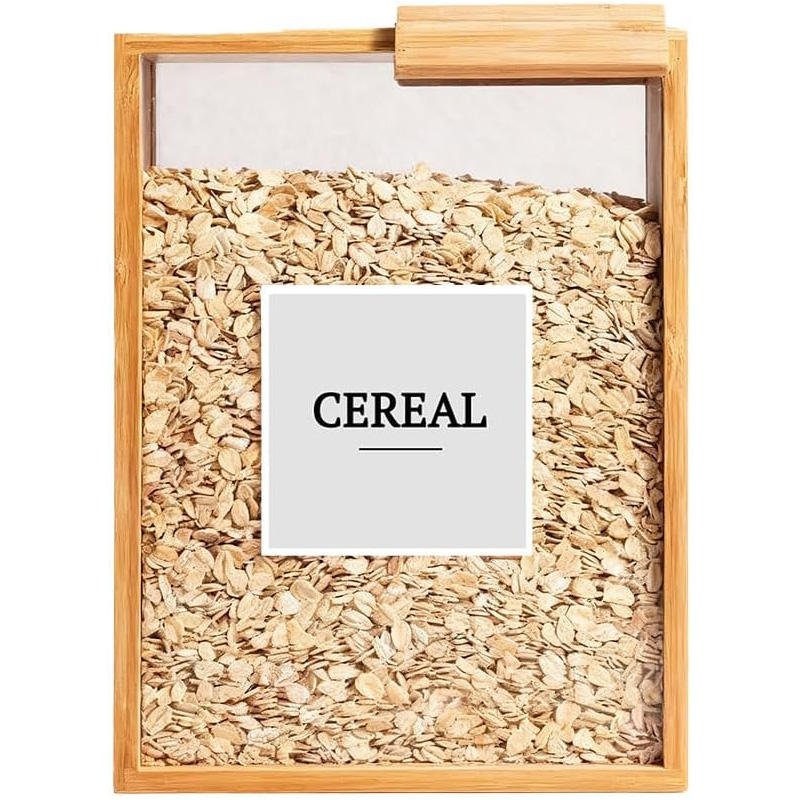 Boîte de rangement multi-céréales en bambou naturel avec couvercle coulissant, conteneur alimentaire carré pour cuisine, idéal pour épices, miel, millet et céréales