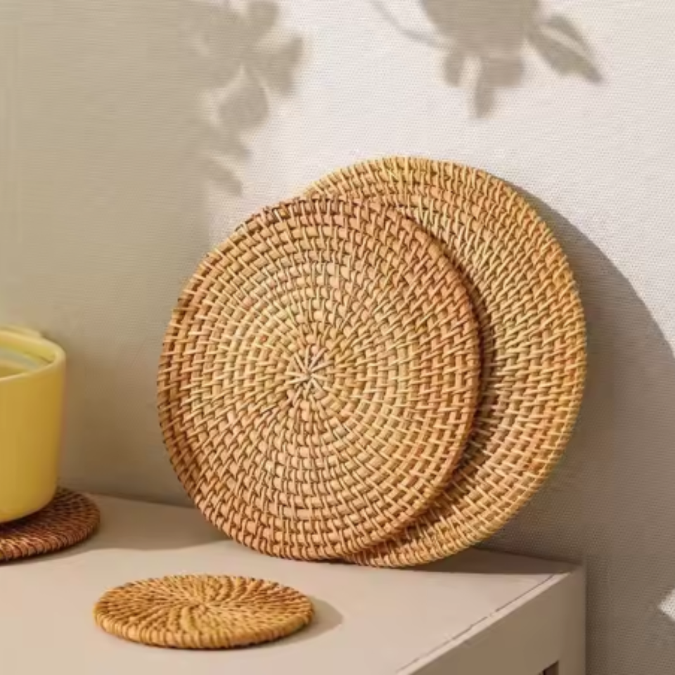 Sous-verres en osier naturel classiques en forme de fleur, faits à la main au Vietnam, tapis isolants thermiques durables