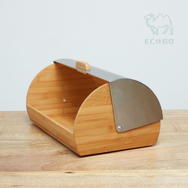 Boîte à Pain en Bambou Naturel Forme Rectangle avec Couvercle en Acier Inoxydable et Techniques de Laque