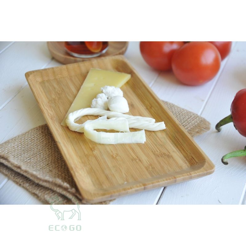 Ensemble de plateaux de service en bambou naturel pour la cuisine et les repas.