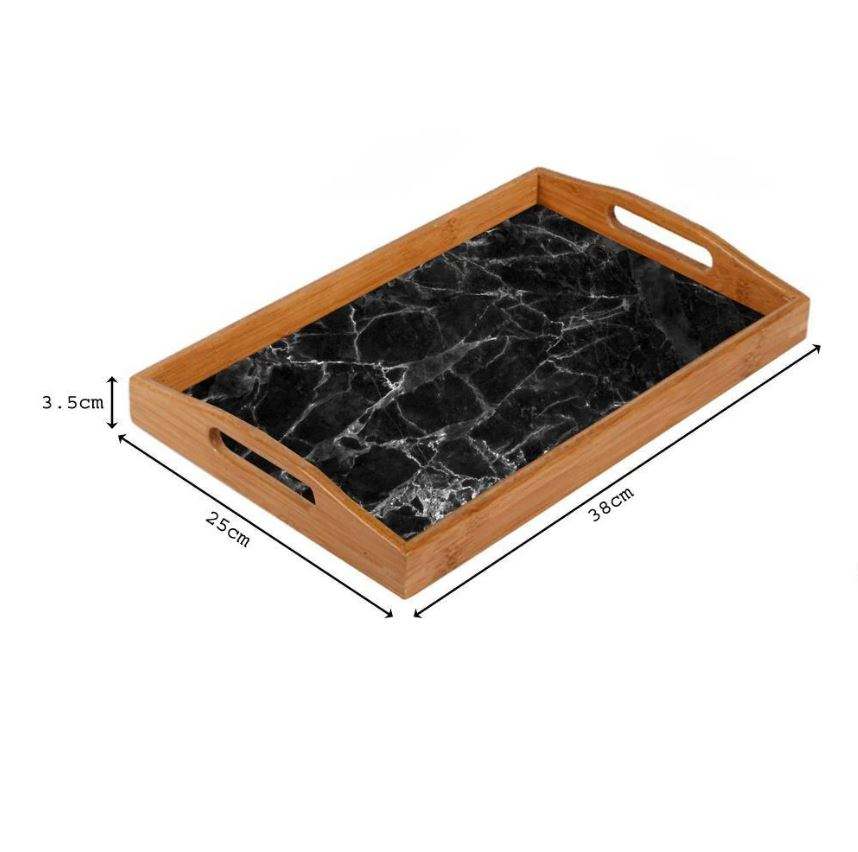 Grand Plateau de Service en Bois de Bambou Naturel Poignée Designer Vaisselle en Bois pour Cuisine Salle à Manger Servir Plateaux de Rangement à Usage Régulier
