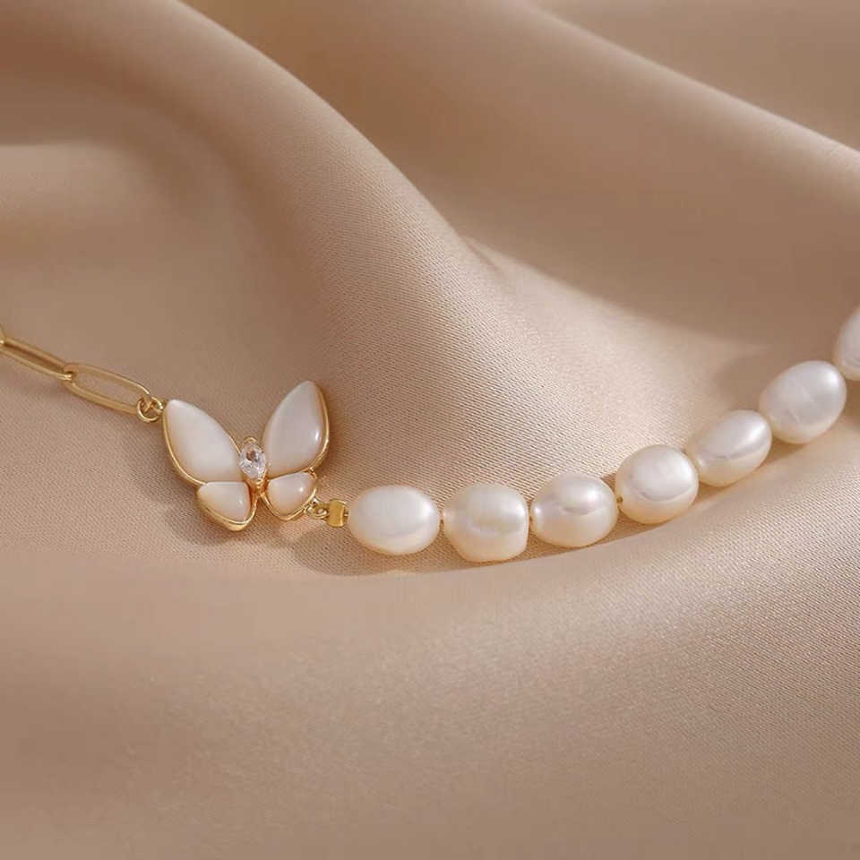 SL17-3 Natural Baroque Pearl Bracelet/Fritillary Butterflycolor