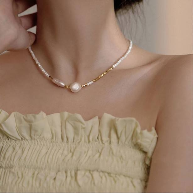 Natural Baroque Pearl Necklace for Women Retro Light Luxury Exquisite Niche Design Korean Edition with Clavicle Chain