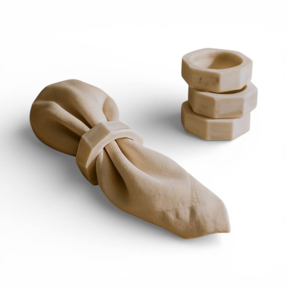 Anneaux de serviette en marbre beige naturel aux tons chauds pour un style de table rustique et élégant, unique