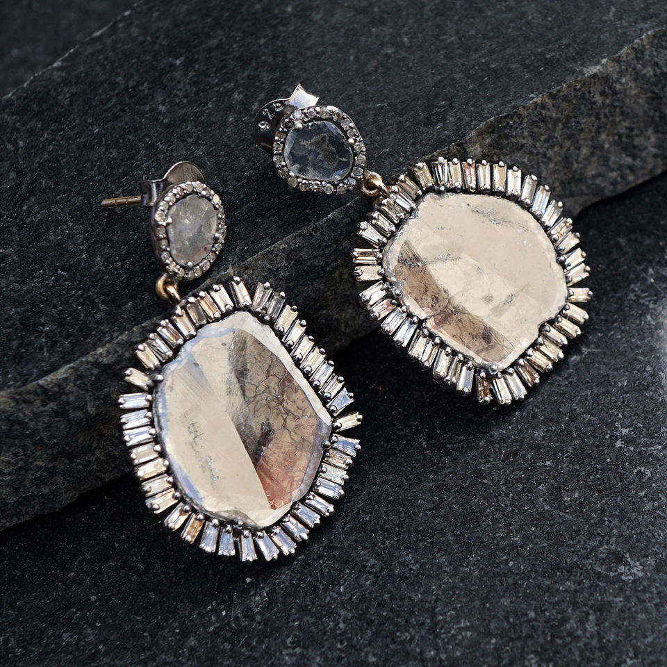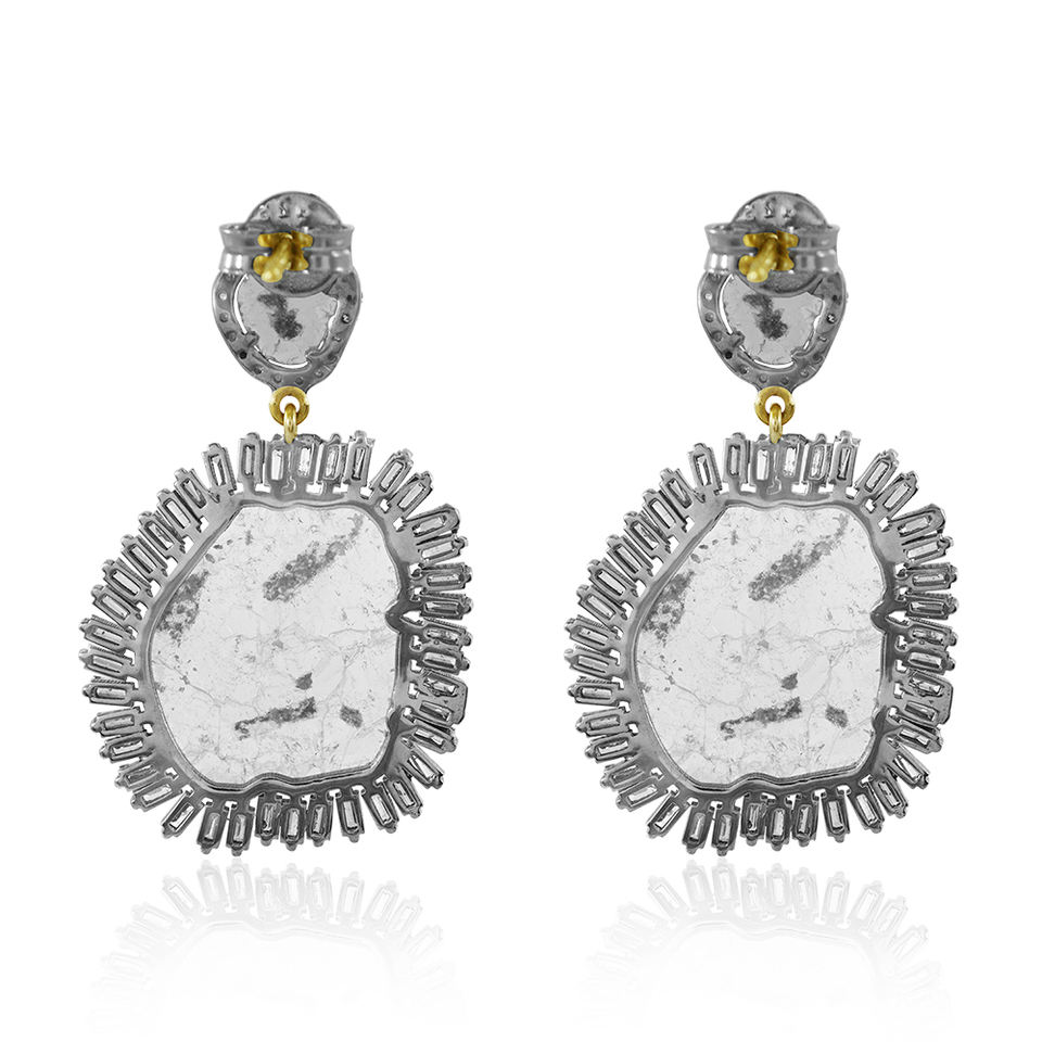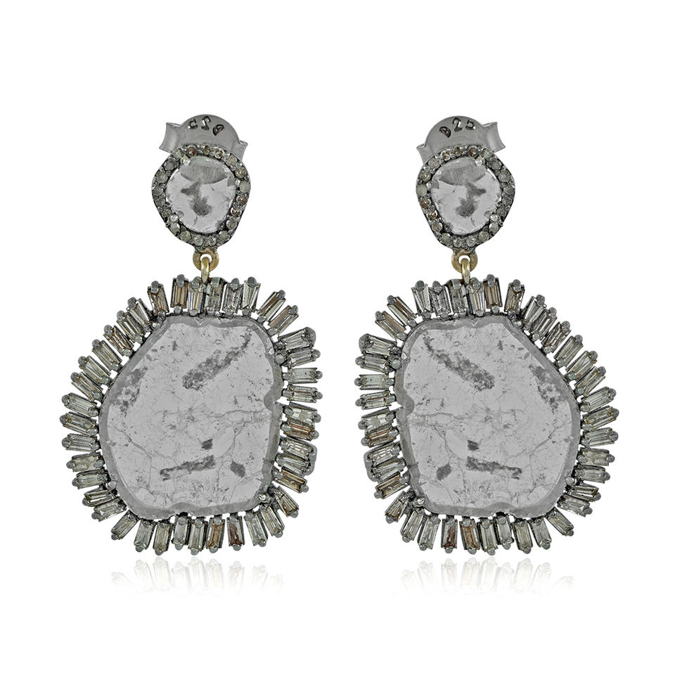 Boucles d'oreilles pendantes en argent 925 oxydé avec diamants Polki naturels de grande taille et diamants baguette, bijoux fins faits à la main, vente en gros