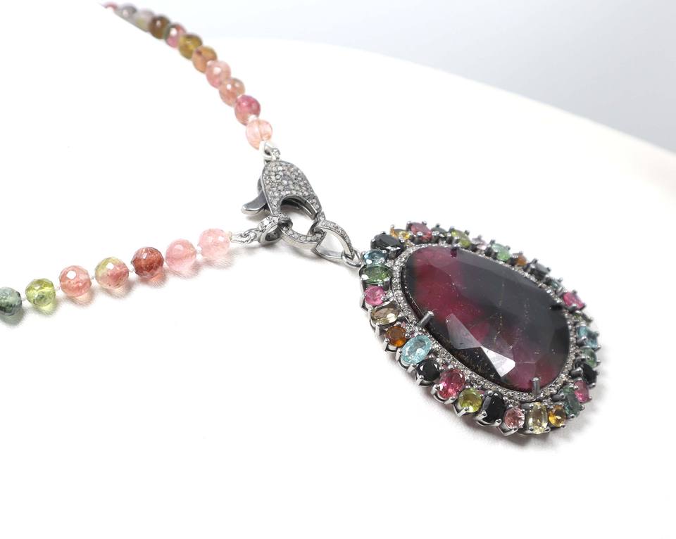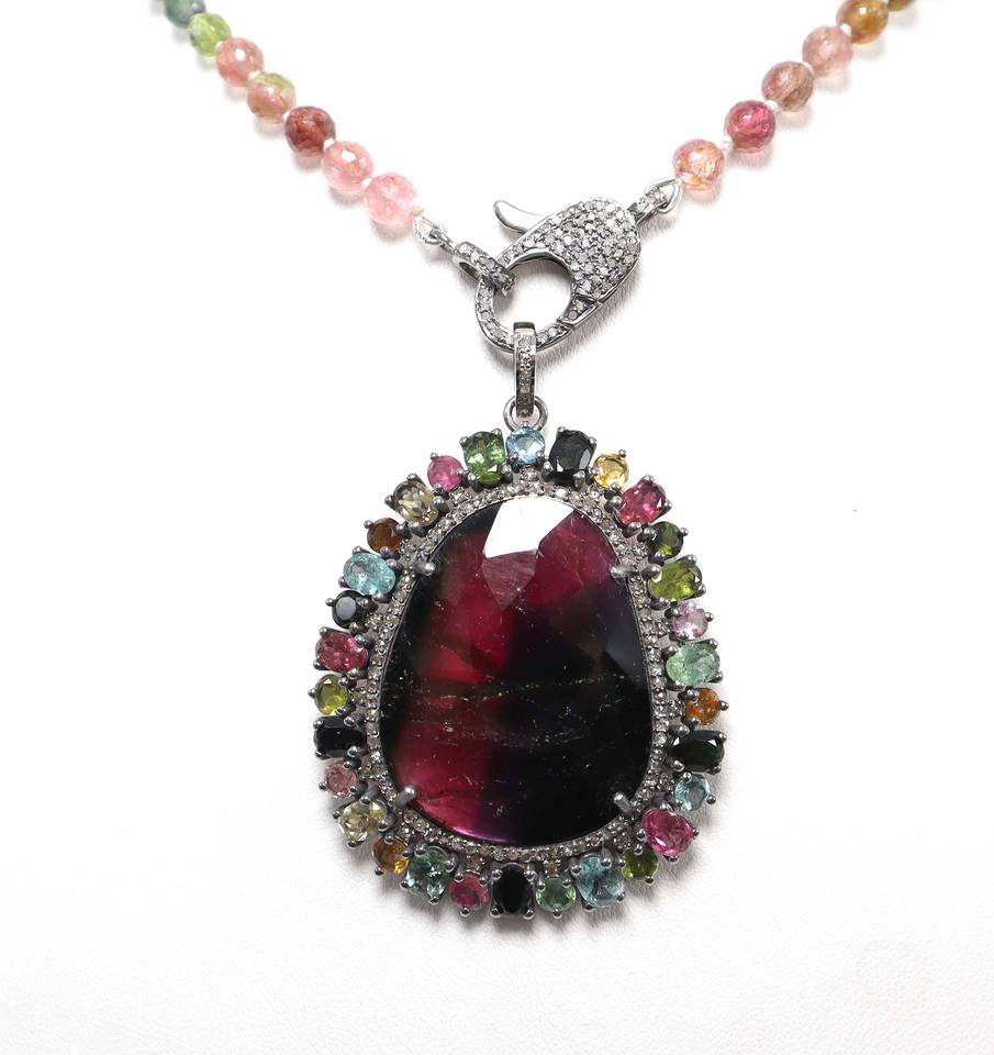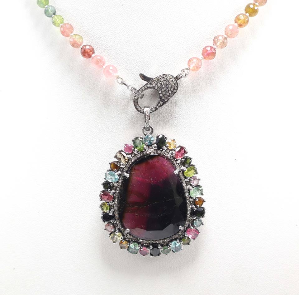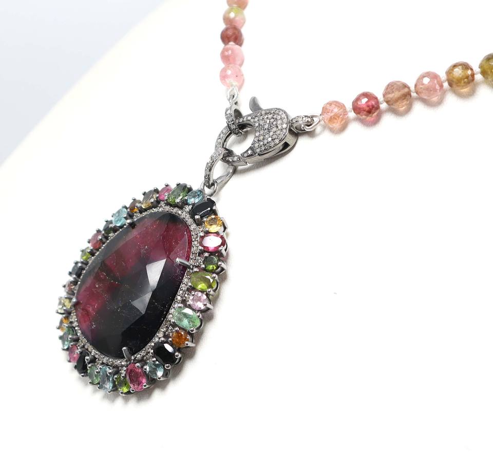 Pendentif en pierre taillée à facettes en tourmaline biologique naturelle Collier rond en tourmaline multiple Perles Collier en diamant pavé de serrure