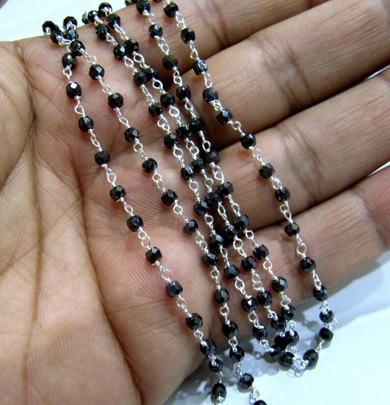 Chaîne de chapelet enveloppée de fil de zircon cubique perlé de taille 3mm de rondelle de CZ noire naturelle