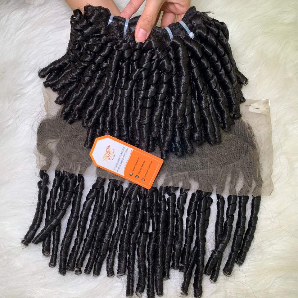 -Nous emballons chaque paquet de cheveux dans un sac en plastique.