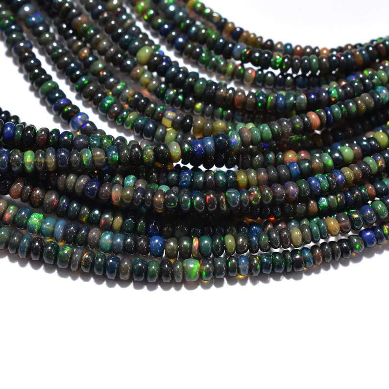 Product name:Black Ethiopian Opal Smooth Rondelle Beads