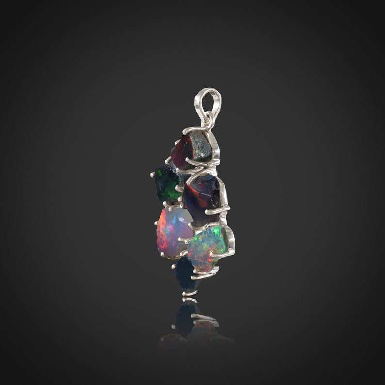 Natural Black Fire Opal Rough Pendant Sterling Silver Gold Plated Unique Engagement Wedding Jewelry Birthday Gift for Women