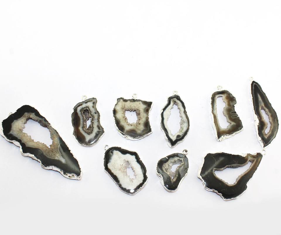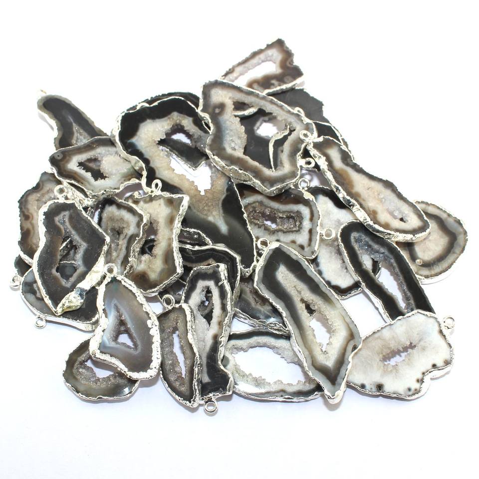Tranche d'agate de géode noire naturelle connecteur druzy plaqué argent connecteur à boucle unique fait à la main pour boucle d'oreille et pendentif fourniture de bricolage