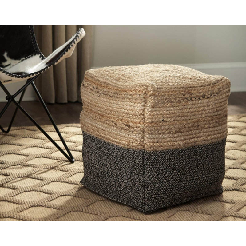 Natural & Black Jute Braided Pouf 17.5 X 20.25 Inches Woven Footstool Stools & Ottomans"