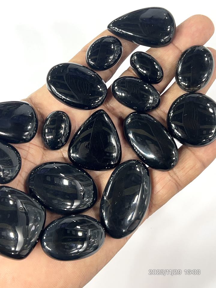Natural Black Obsidian Loose Gemstone Cabochon Mix Shape Mix Size 20 To 30 Mm Approx.