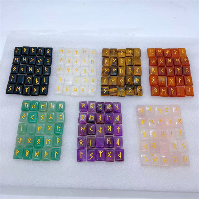 Nom de l'article:Obsidienne noire naturelle Viking Rune Stone Set Gravé Lettre Nordique