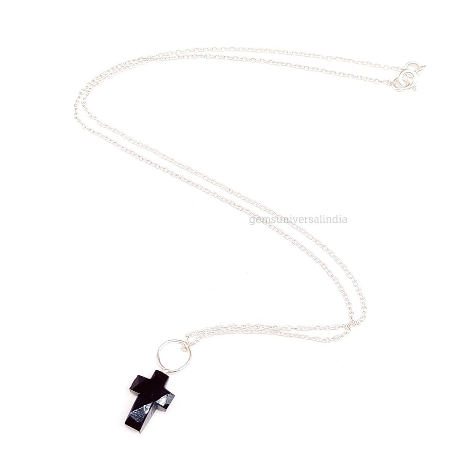 Product name:Black Onyx Gemstone Cross Shape 925 Sterling Silver Necklace