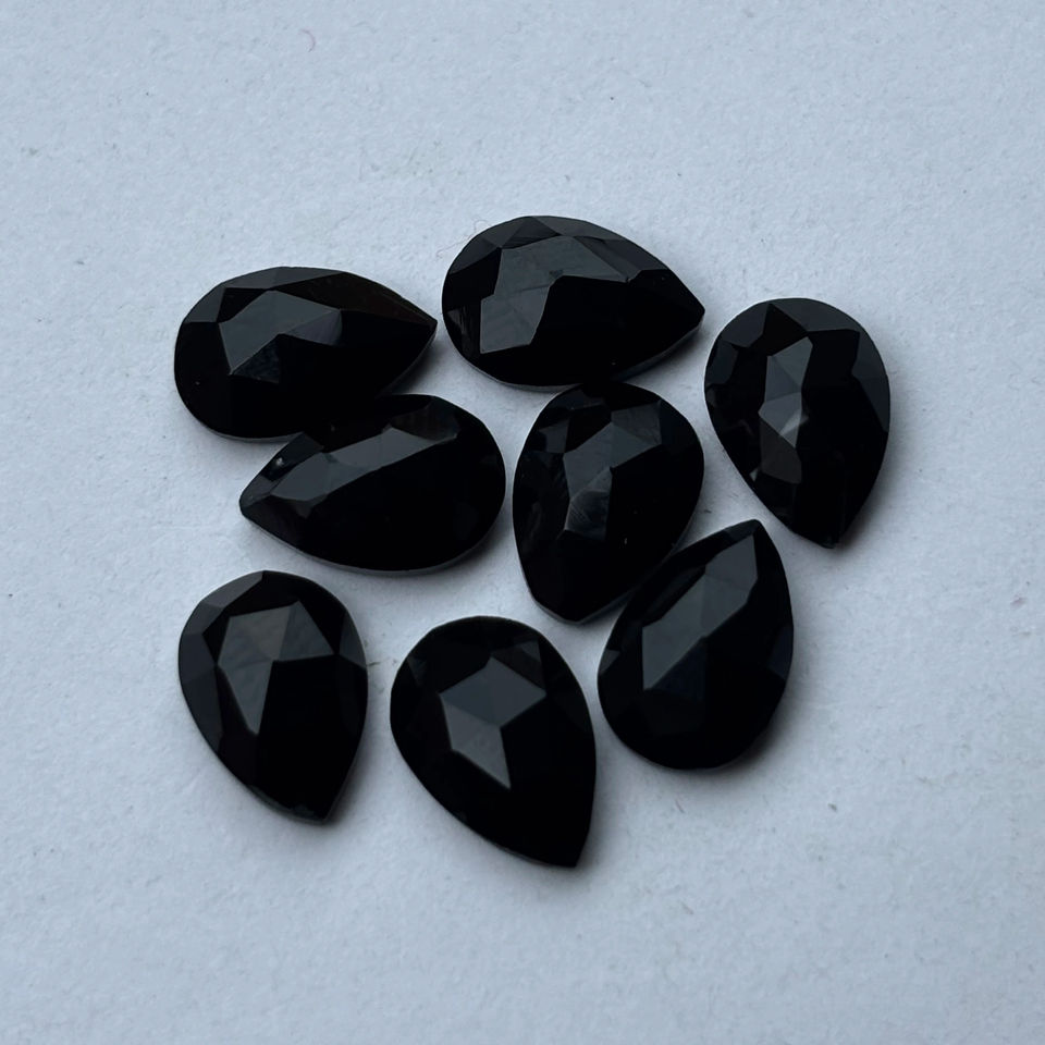 Direct India Manufacturer Natural Black Onyx Polished Faceted Pear Cut Flat Back One-Sided Loose Gemstone for Jewelry Making
