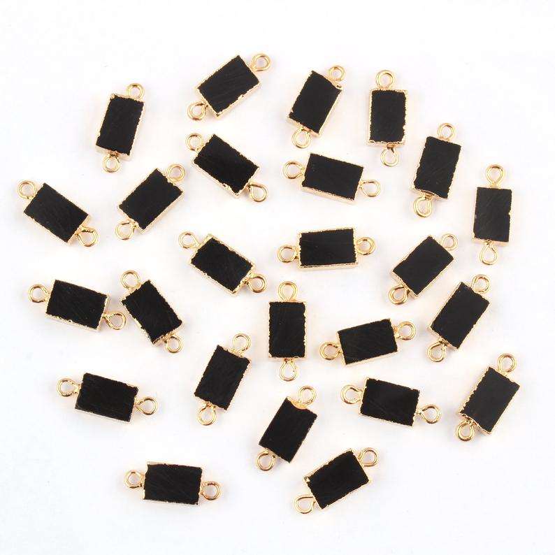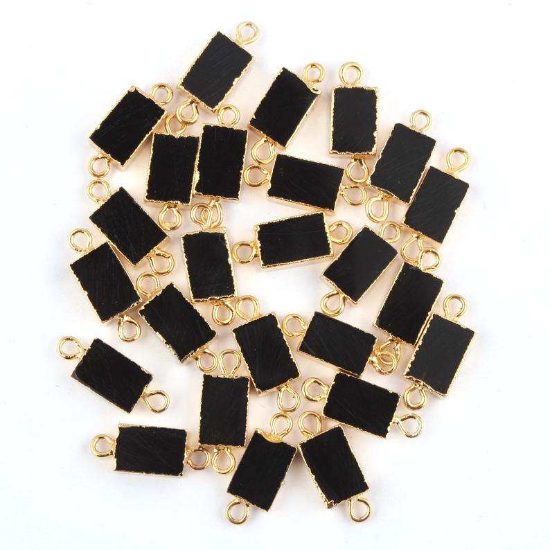 Connecteurs en Onyx noir naturel de forme rectangulaire, petits breloques en tranches, pour pendentif plaqué or, connecteurs DIY, bricolage