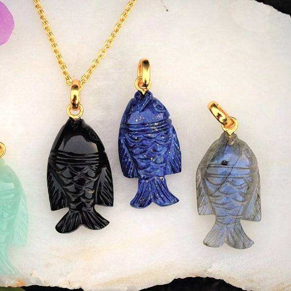 Product name:Black Onyx Fish Carved Gemstone Pendant in 925 Silver