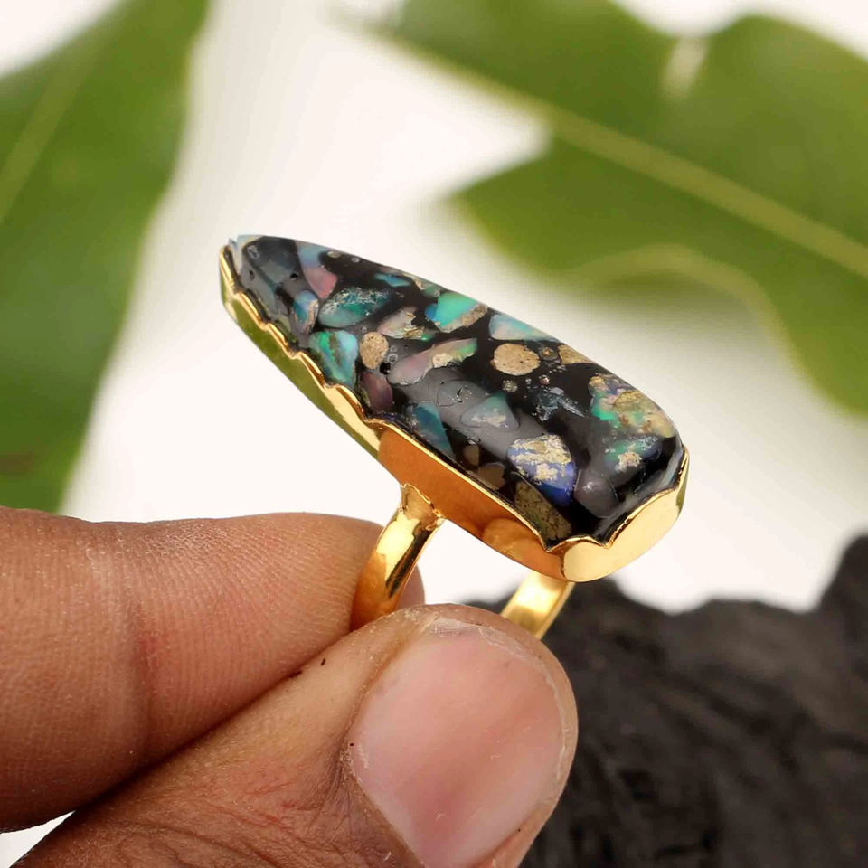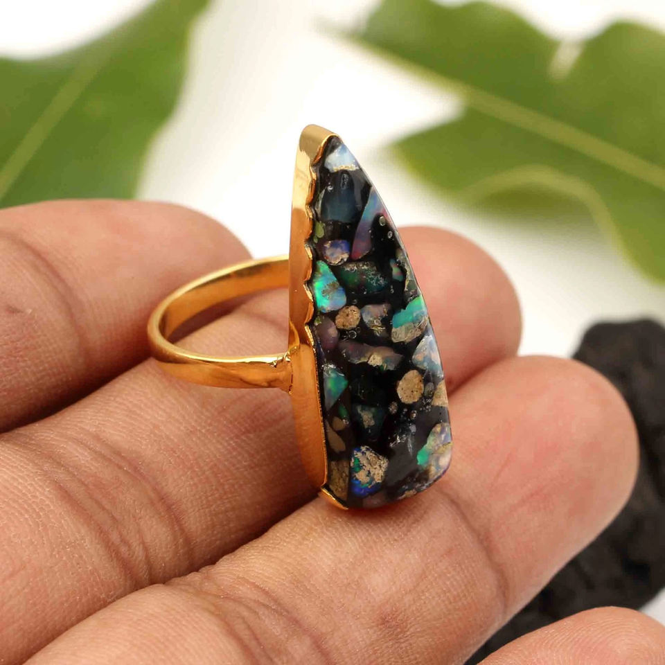 Product Name:Natural Black Opal Copper Gemstone Ring