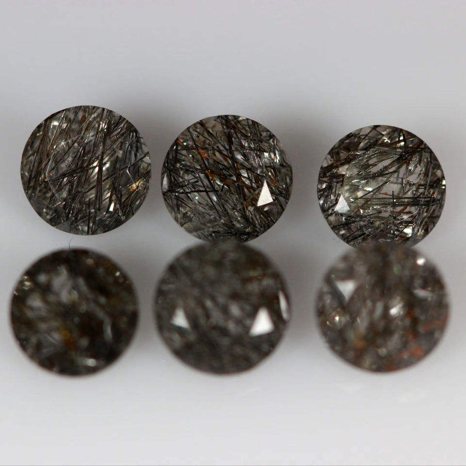 Pierres précieuses en rutile noir naturel, facettées, rondes, taille brillante, calibrées, pour la fabrication de bijoux, origine indienne