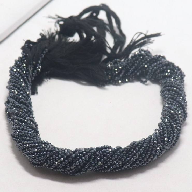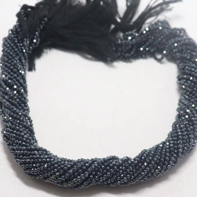 Perles Rondelles Facettées en Spinelle Noire Naturelle 2 MM, Perles en Spinelle Noire Plaquées Argent 13 Pouces, Perles de Pierre Précieuse en Spinelle Noire en Gros