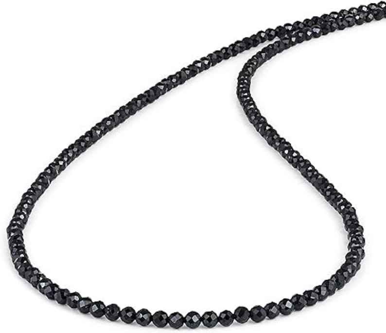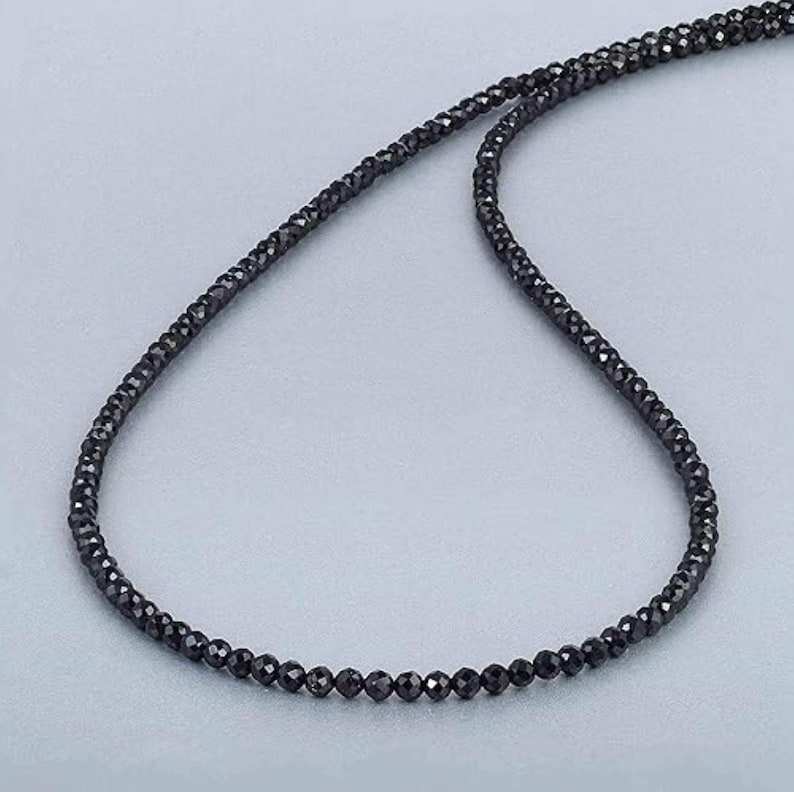 Collier de perles de pierres précieuses rondes à facettes en spinelle noire naturelle 2mm 3mm Colliers ras du cou à la mode en pierre de spinelle pour femmes et hommes en vrac