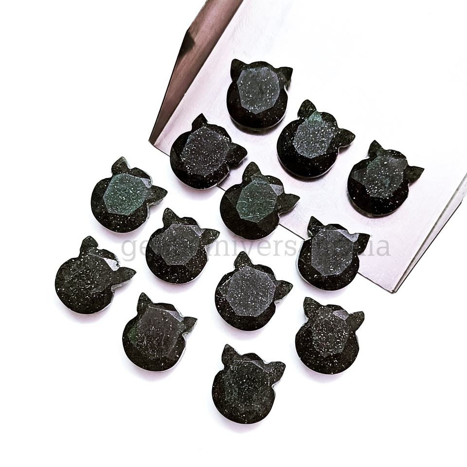 Nom du produit:Pierre précieuse facettée sculptée en forme de chat Sunstone noir naturel