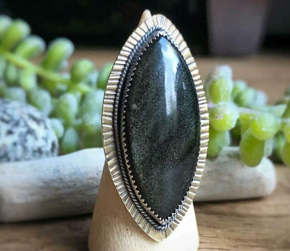 Keyword:Silver Black Sunstone Gemstone Statement Ring Handmade Jewelry