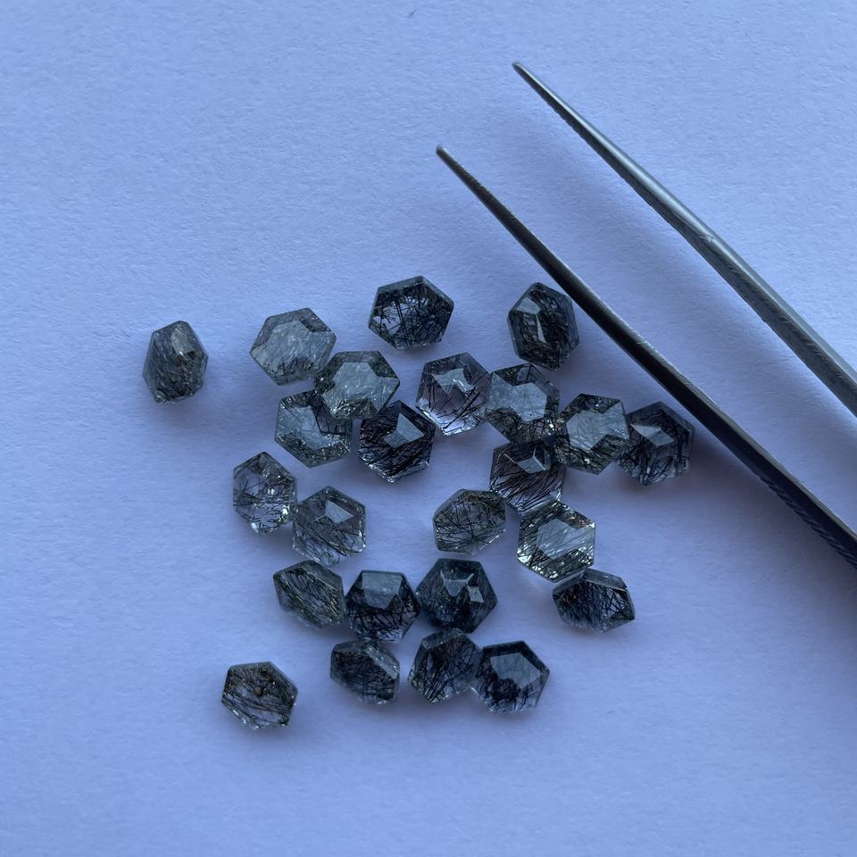 Rutile noir Quartz facettes hexagone calibré taille pierre précieuse DIY