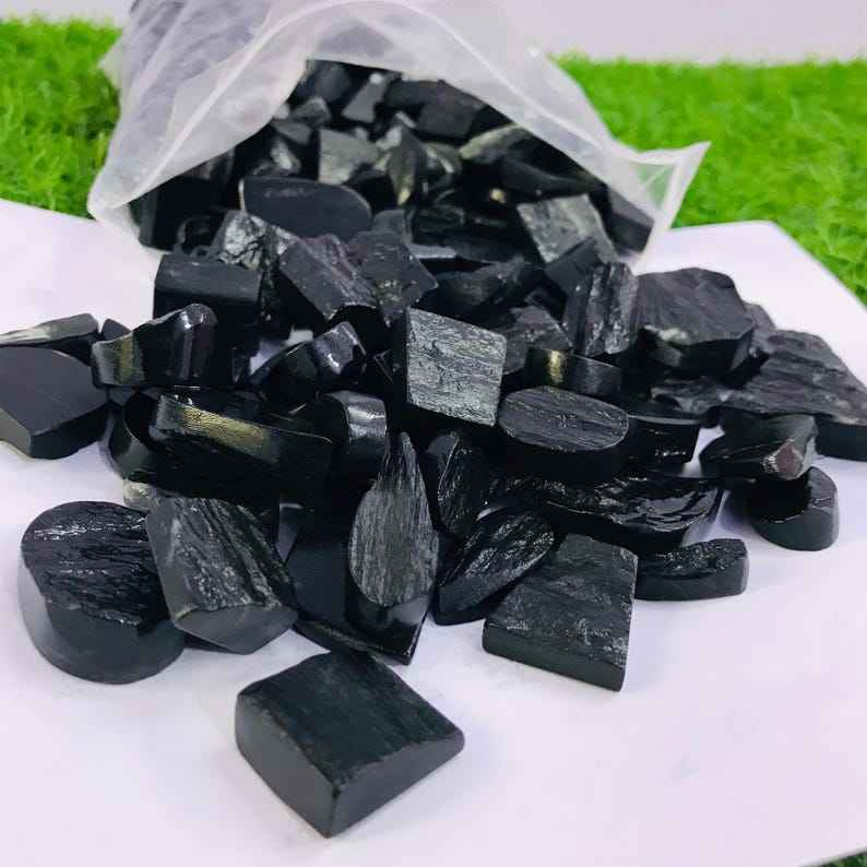 Natural Black Tourmaline Druzy Agate Loose Gemstone Flat Back Polished Stone for Jewelry Making