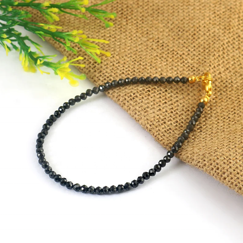 Product name:Black Zircon Micro Faceted Round Beads Bracelet