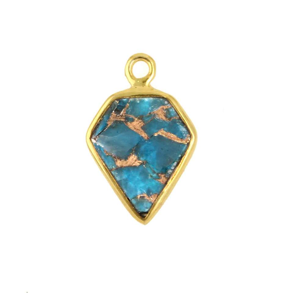Pierre précieuse turquoise en cuivre bleu naturel de haute qualité en plaqué or 18 carats pour femme pendentif fin en forme de boucle bijoux en argent sterling