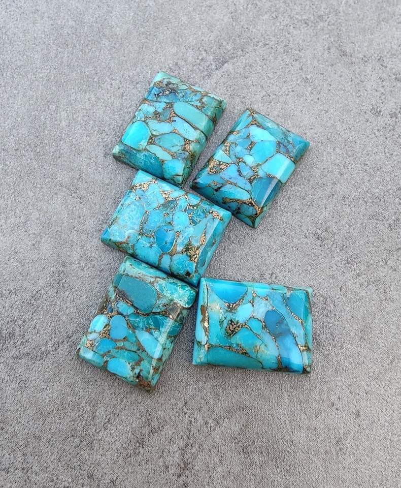 Turquoise bleue naturelle en cuivre, forme rectangulaire, cabochon à dos plat, pierre précieuse calibrée pour bijoux