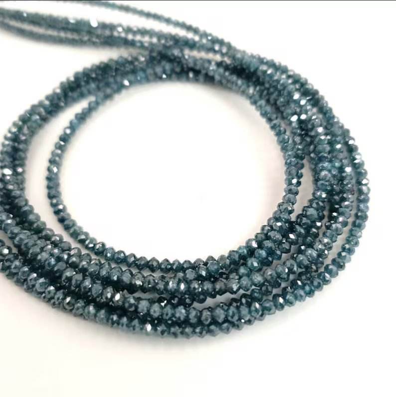 Natural Blue Diamond Faceted Rondelle Beads 1.5-2.2mm Loose Gemstone Beads for Jewelry Making Wholesale