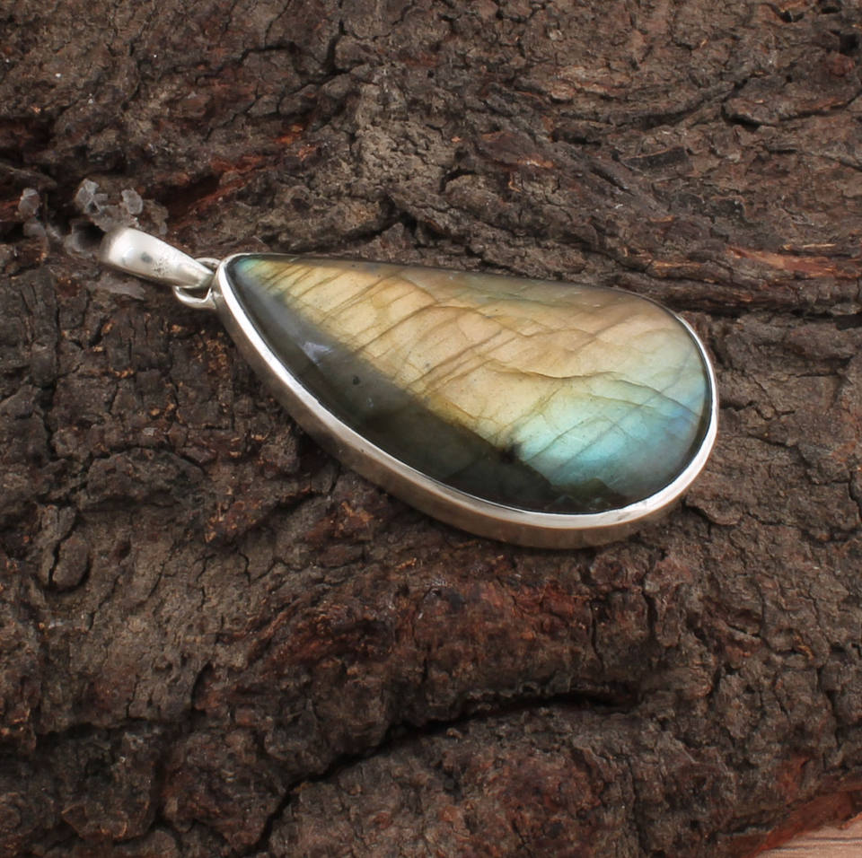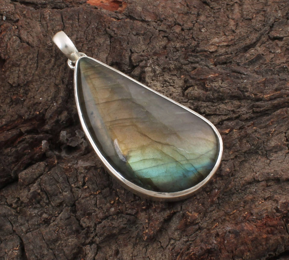 Labradorite bleue naturelle, argent sterling 925 plaqué platine, bijoux vintage de haute qualité, pierre précieuse irisée, cadeau pour femme
